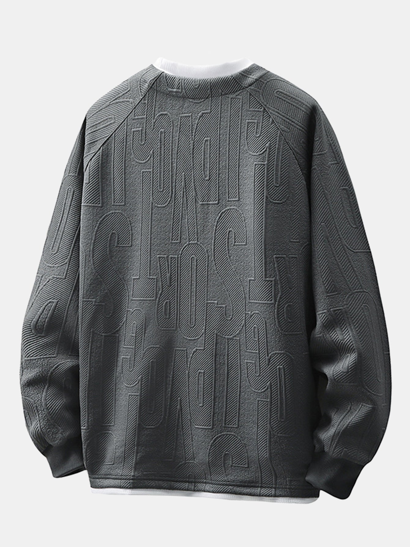Locker sitzendes 2-in-1 Buchstaben-Jacquard Sweatshirt mit Reverskragen