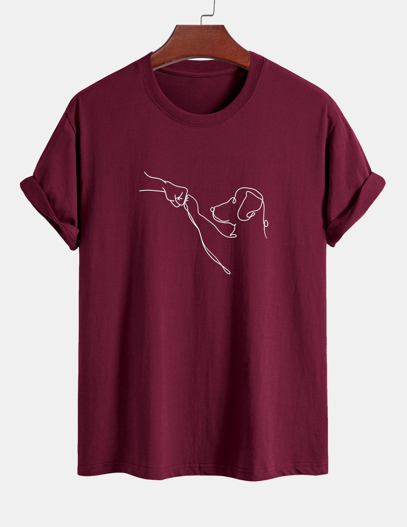 Baumwoll-T-Shirt mit regulärer Passform und Hund Linienzeichnung