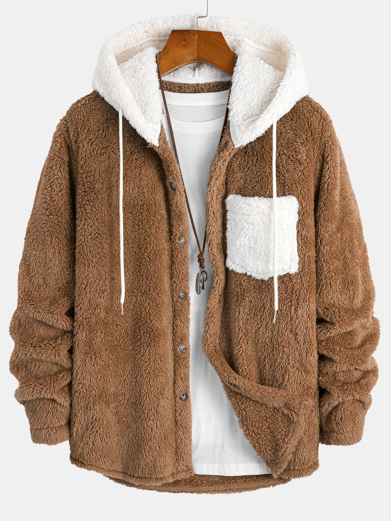Fügen Sie Ihrer Freizeitgarderobe Wärme und Stil mit dem langärmeligen Teddy-Kapuzenhemd mit Tasche hinzu. Mit einer weichen Teddy-Fleece-Kapuze, funktionaler Brusttasche und entspannter Silhouette verbindet dieses Stück gemütlichen Komfort mit lässigem Streetwear-Appeal.