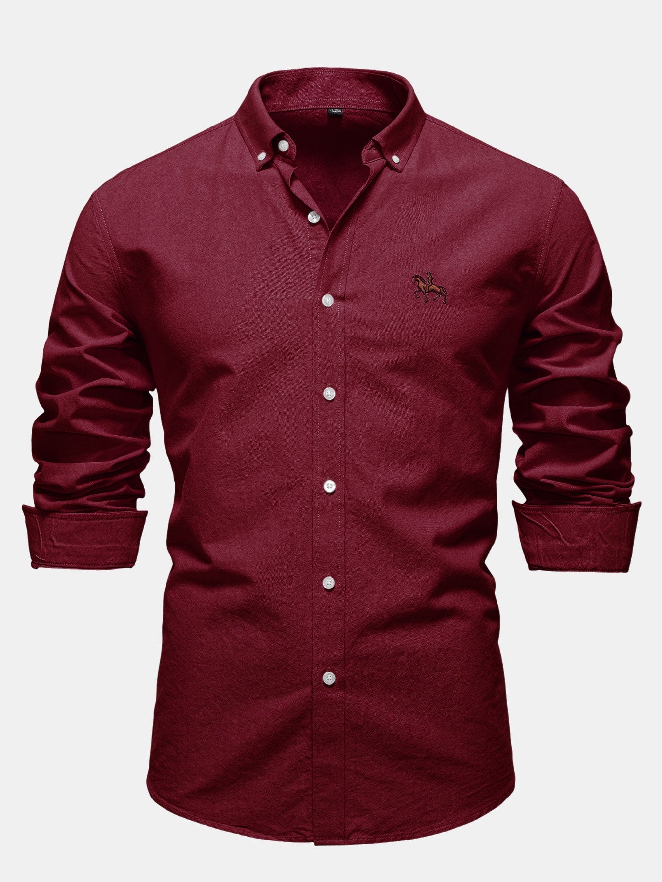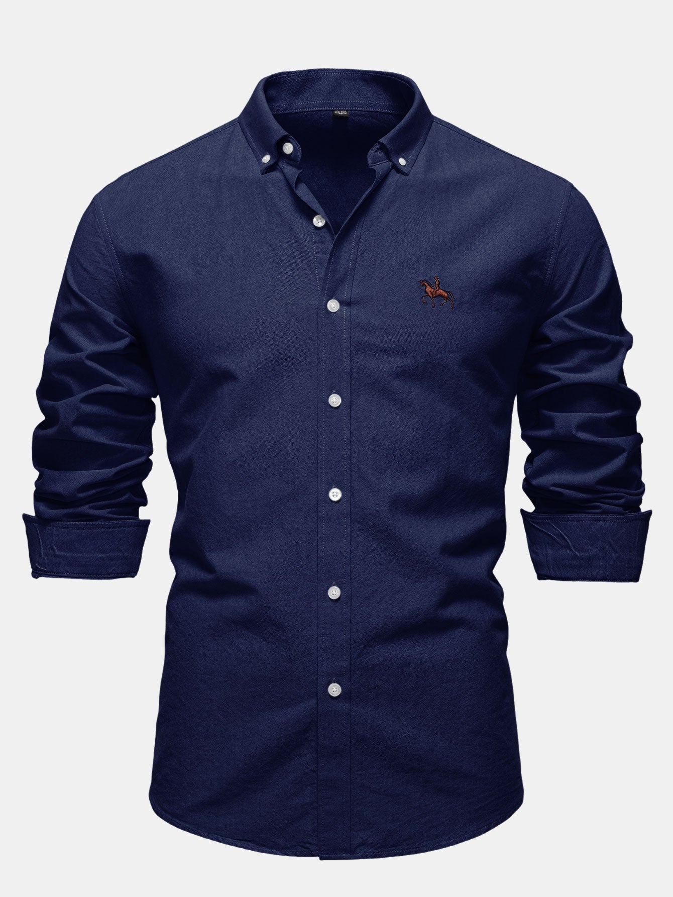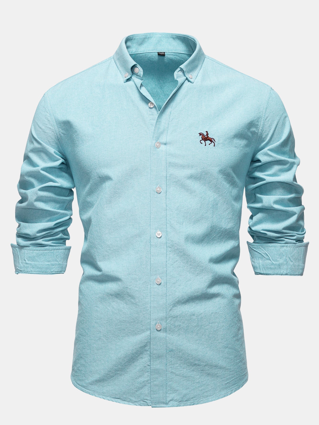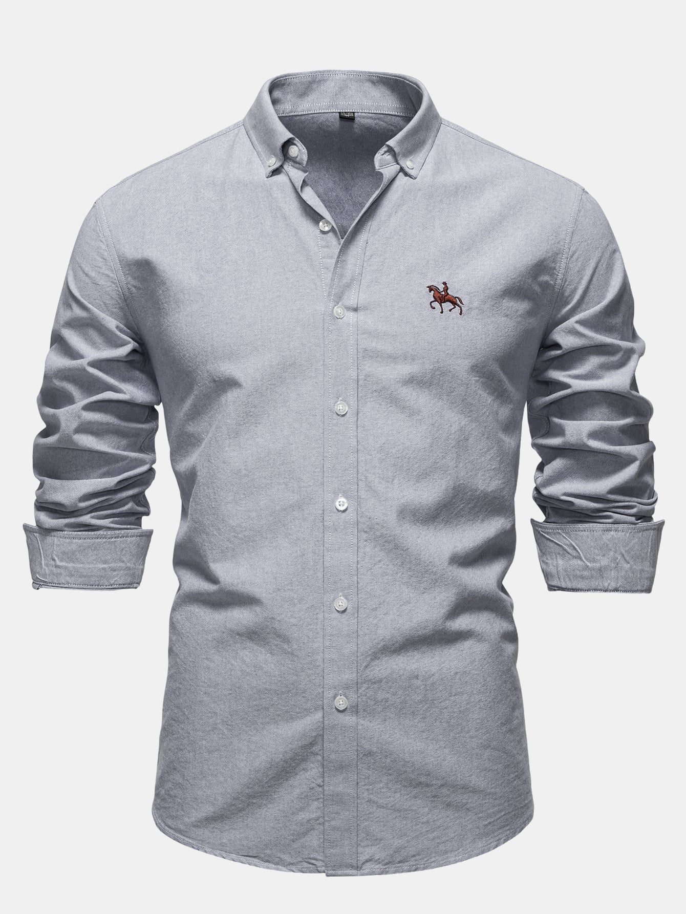Cowboy-Stickerei Baumwoll-Oxford Hemd mit Knopfleiste