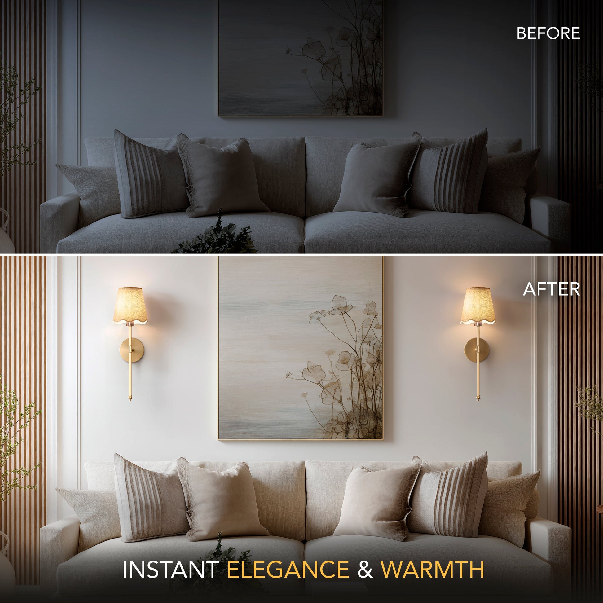 Genießen: Schalte die Lampe mit der Fernbedienung ein. Passe die Lichteinstellungen deiner Stimmung an – mit Optionen für Farbe, Helligkeit, Timer – und genieße den Luxus dieser wunderschönen Wandleuchten!