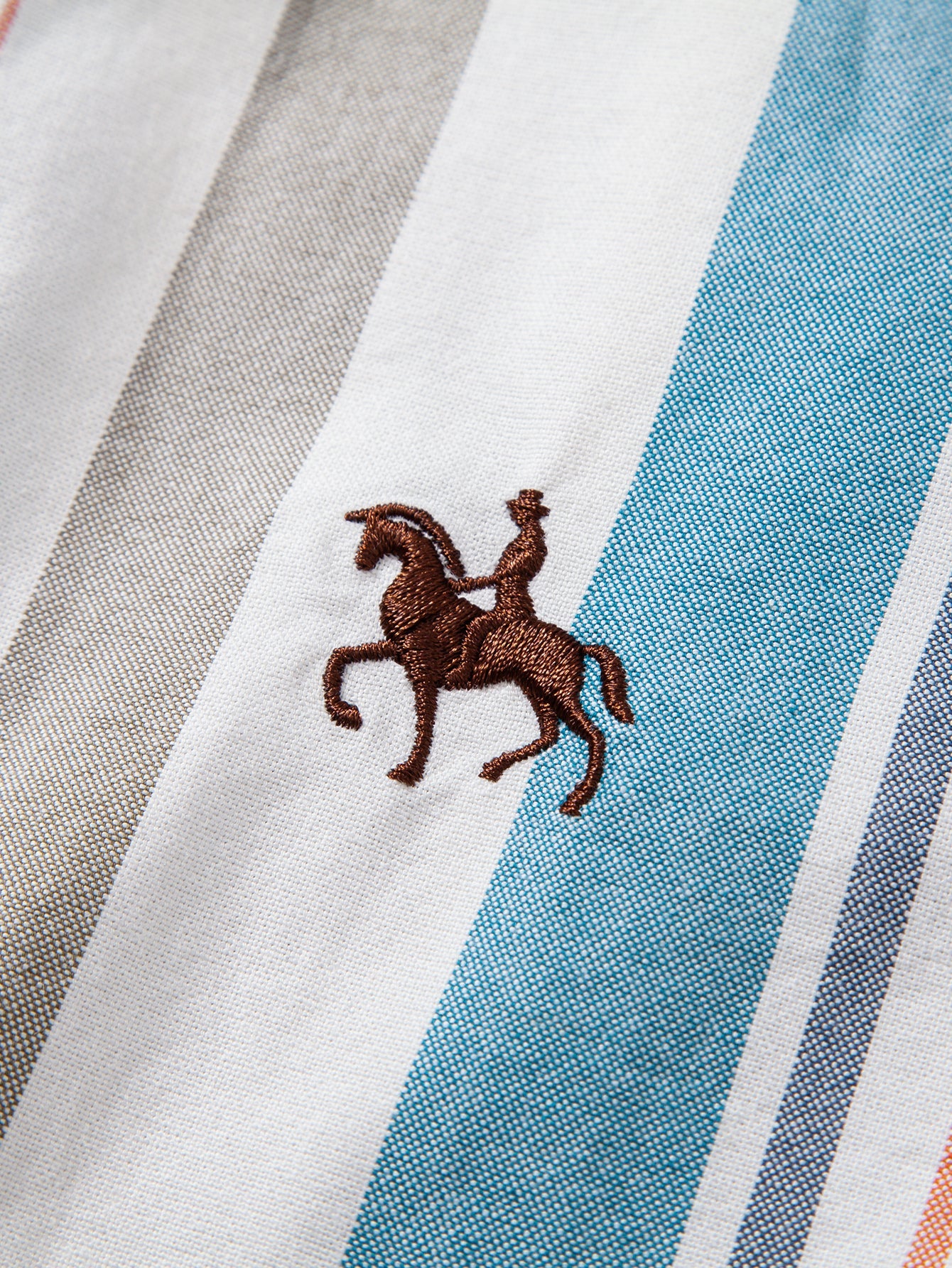 Mit zarter, vom Cowboy-Stil inspirierter Stickerei und vertikalen Streifendetails verbindet dieses Hemd rustikalen Stil mit einem schlanken, zeitgemäßen Look. Hergestellt aus weichem, atmungsaktivem Stoff, sorgt es für langanhaltenden Komfort, egal ob Sie sich schick anziehen oder leger bleiben.