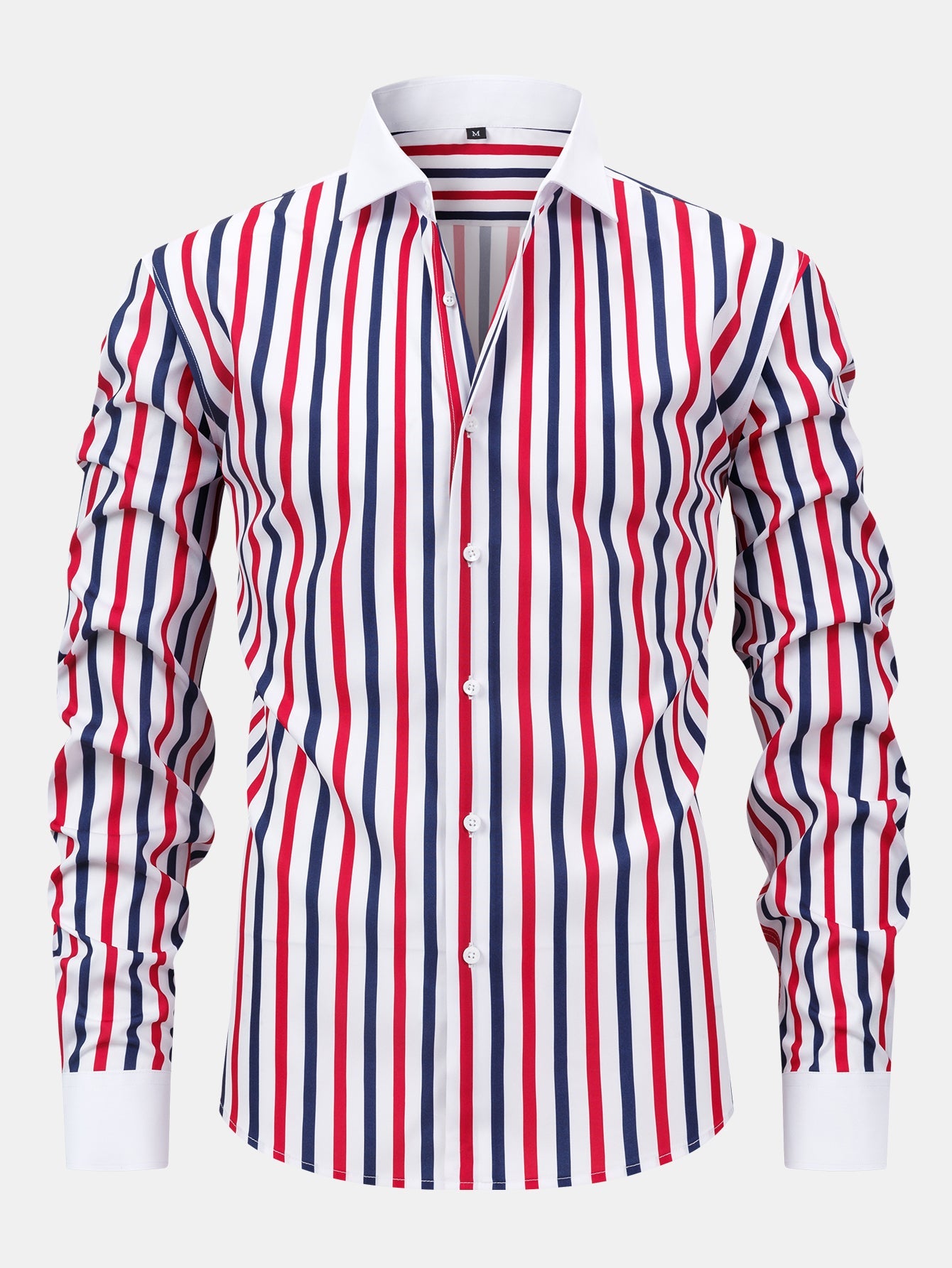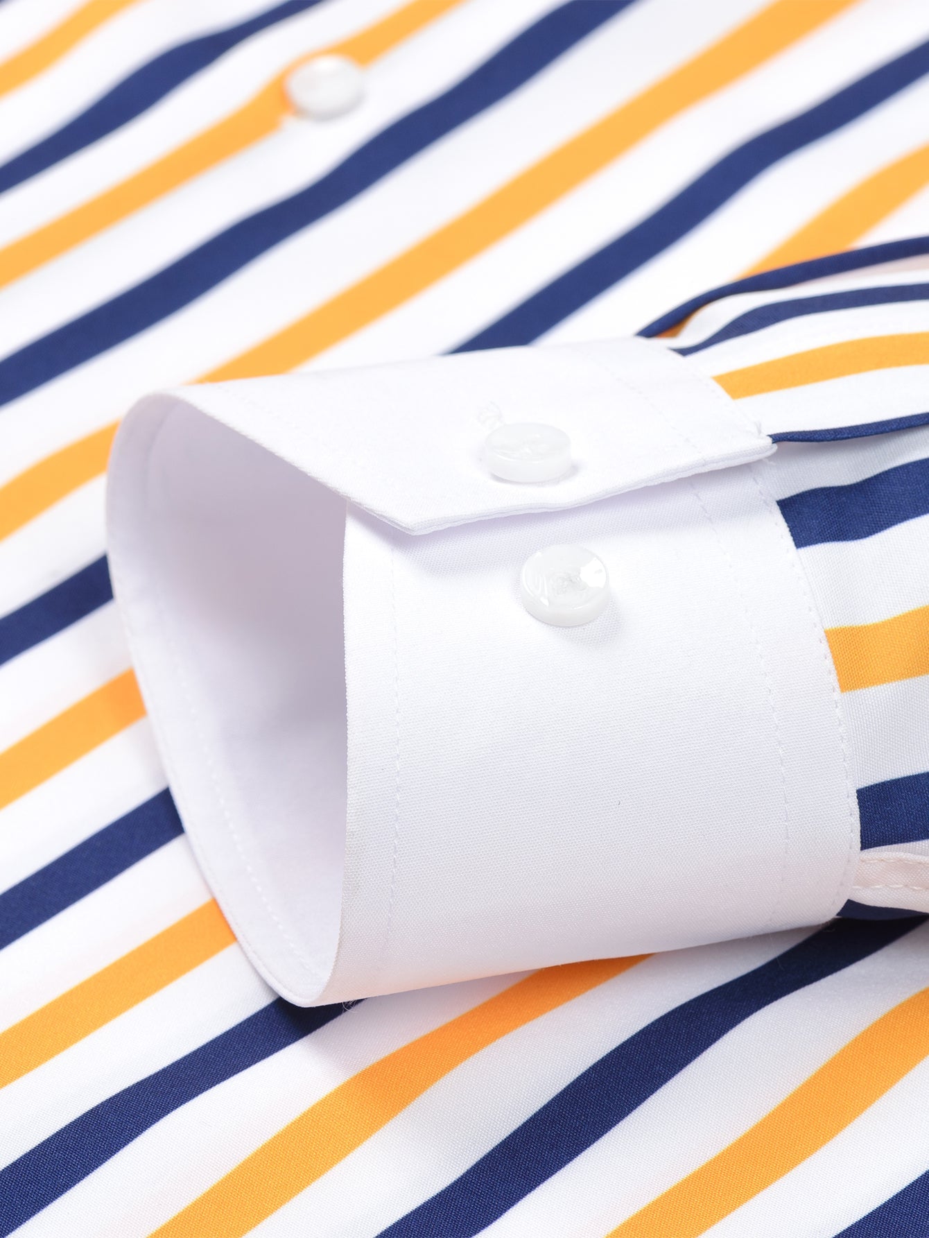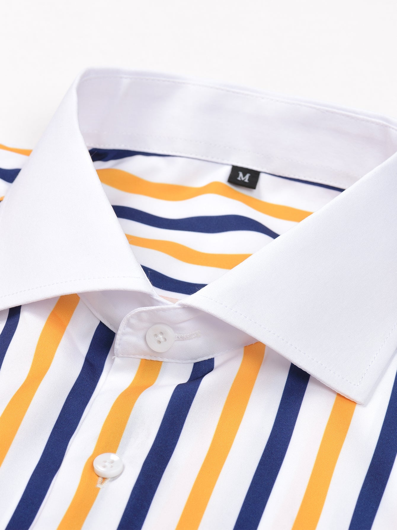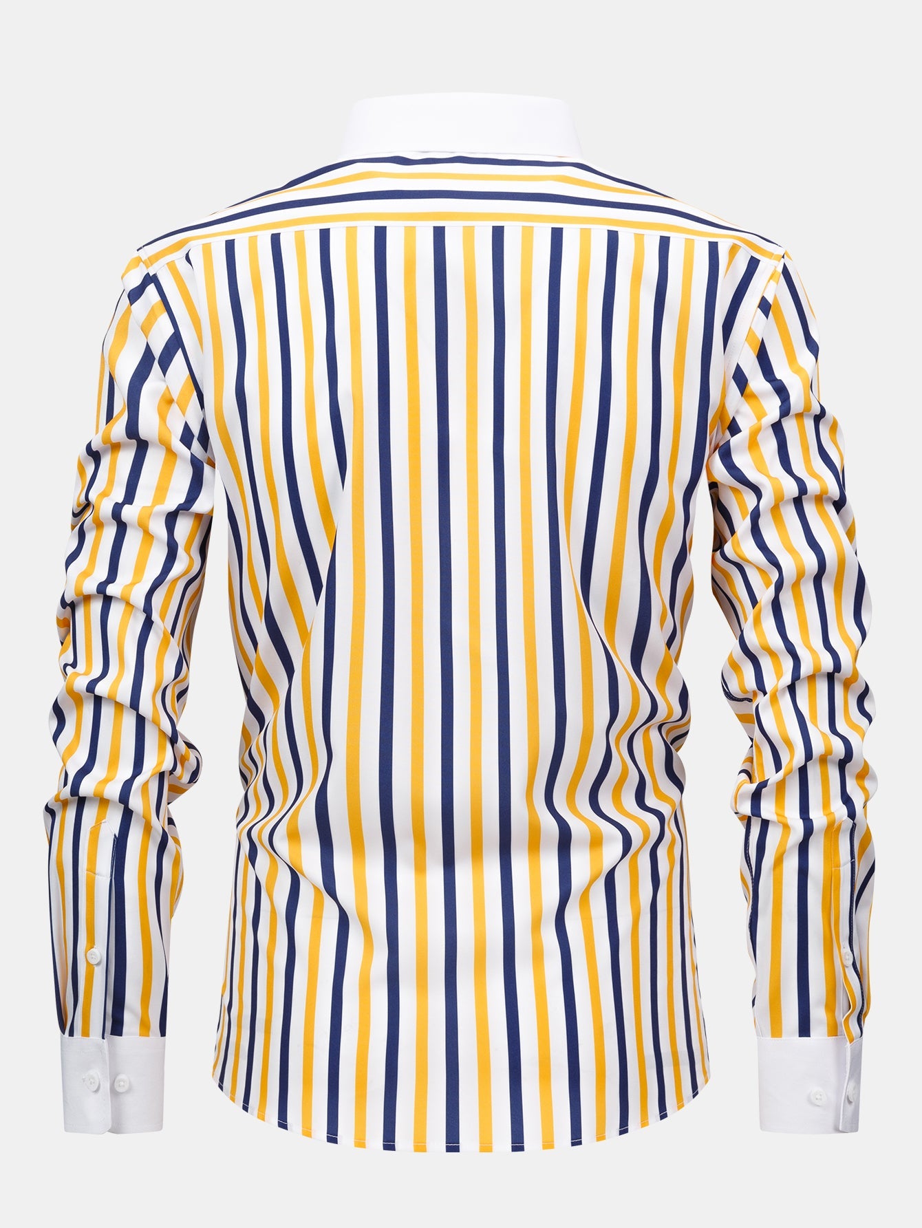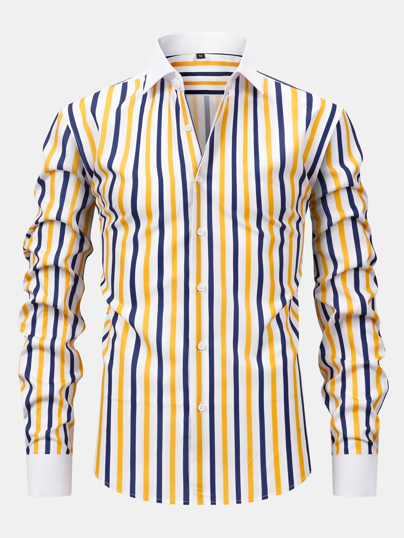 Entworfen mit einem zeitlosen Streifenmuster, bietet dieses Hemd einen sauberen, maßgeschneiderten Look, der nahtlos von der Arbeit zum Wochenende übergeht. Die klassische Knopfleiste vorne und der scharfe Kragen verleihen eine elegante Note, während der leichte, atmungsaktive Stoff ganztägigen Komfort gewährleistet.