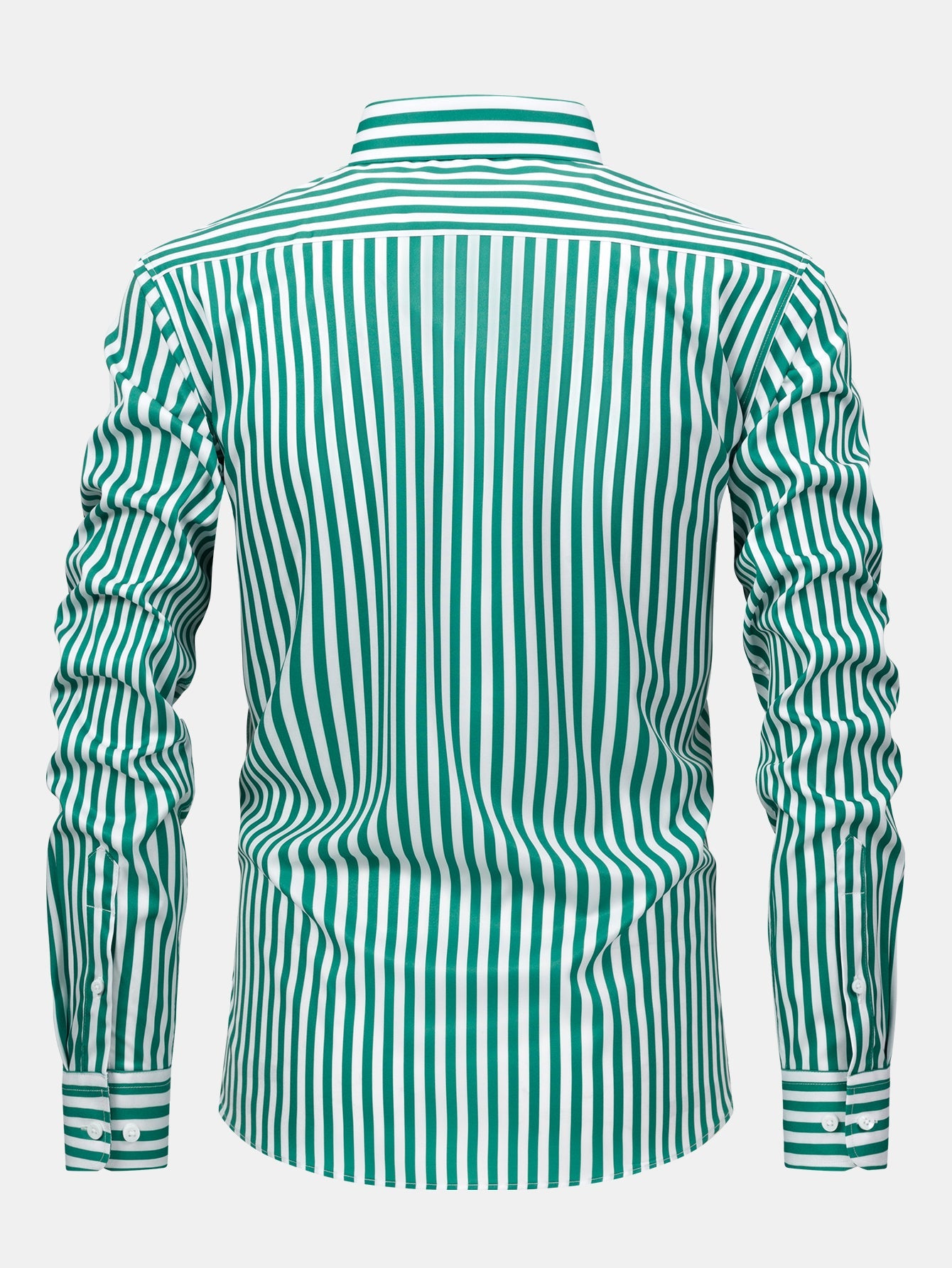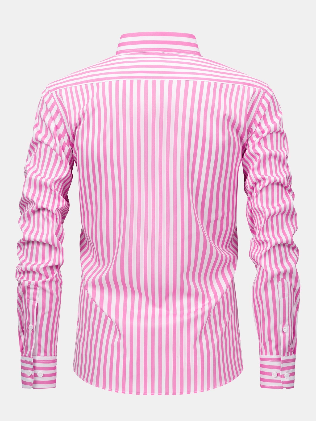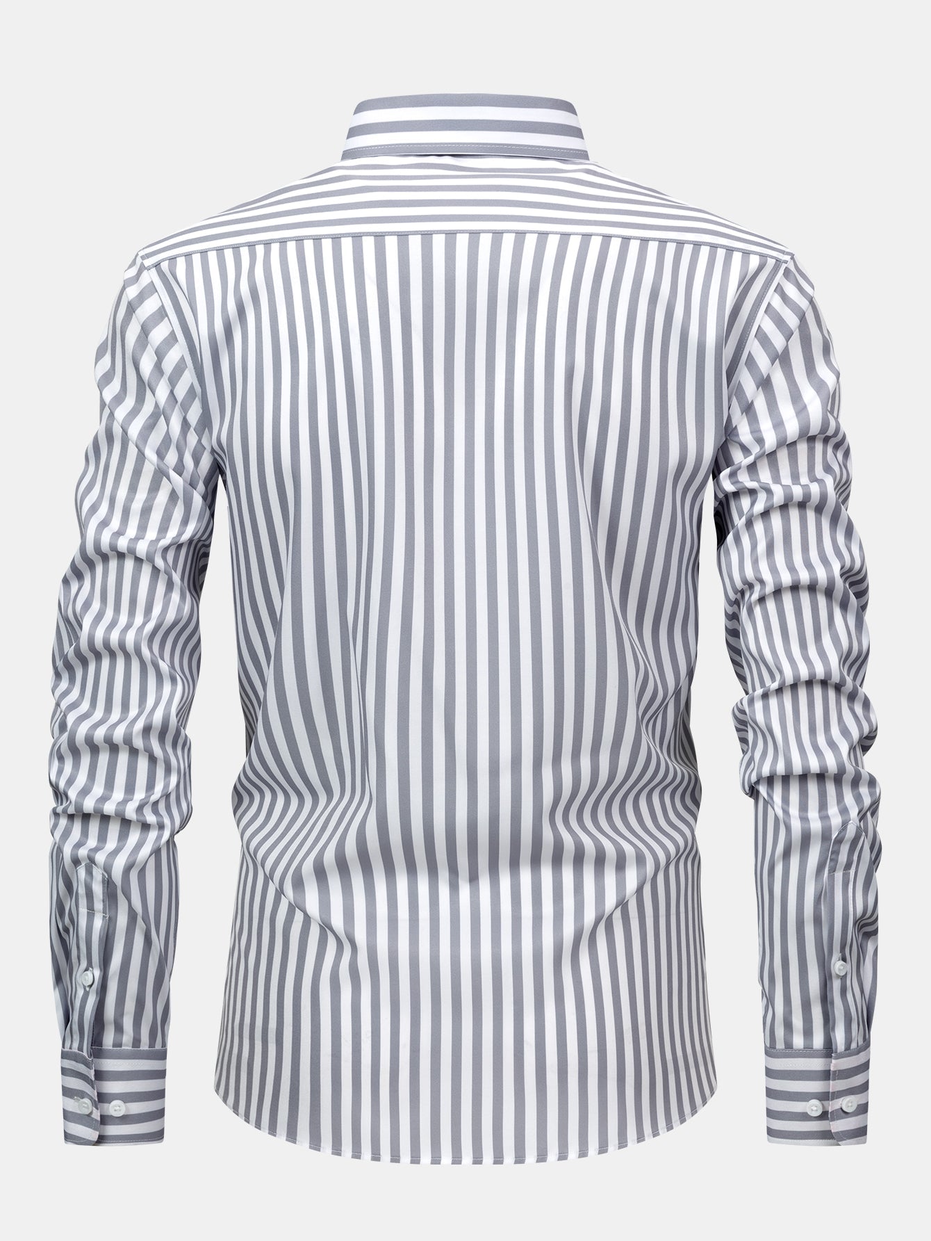 Entworfen mit einem zeitlosen Streifenmuster, bietet dieses Hemd einen sauberen, maßgeschneiderten Look, der nahtlos von der Arbeit zum Wochenende übergeht. Die klassische Knopfleiste vorne und der scharfe Kragen verleihen eine elegante Note, während der leichte, atmungsaktive Stoff ganztägigen Komfort gewährleistet.