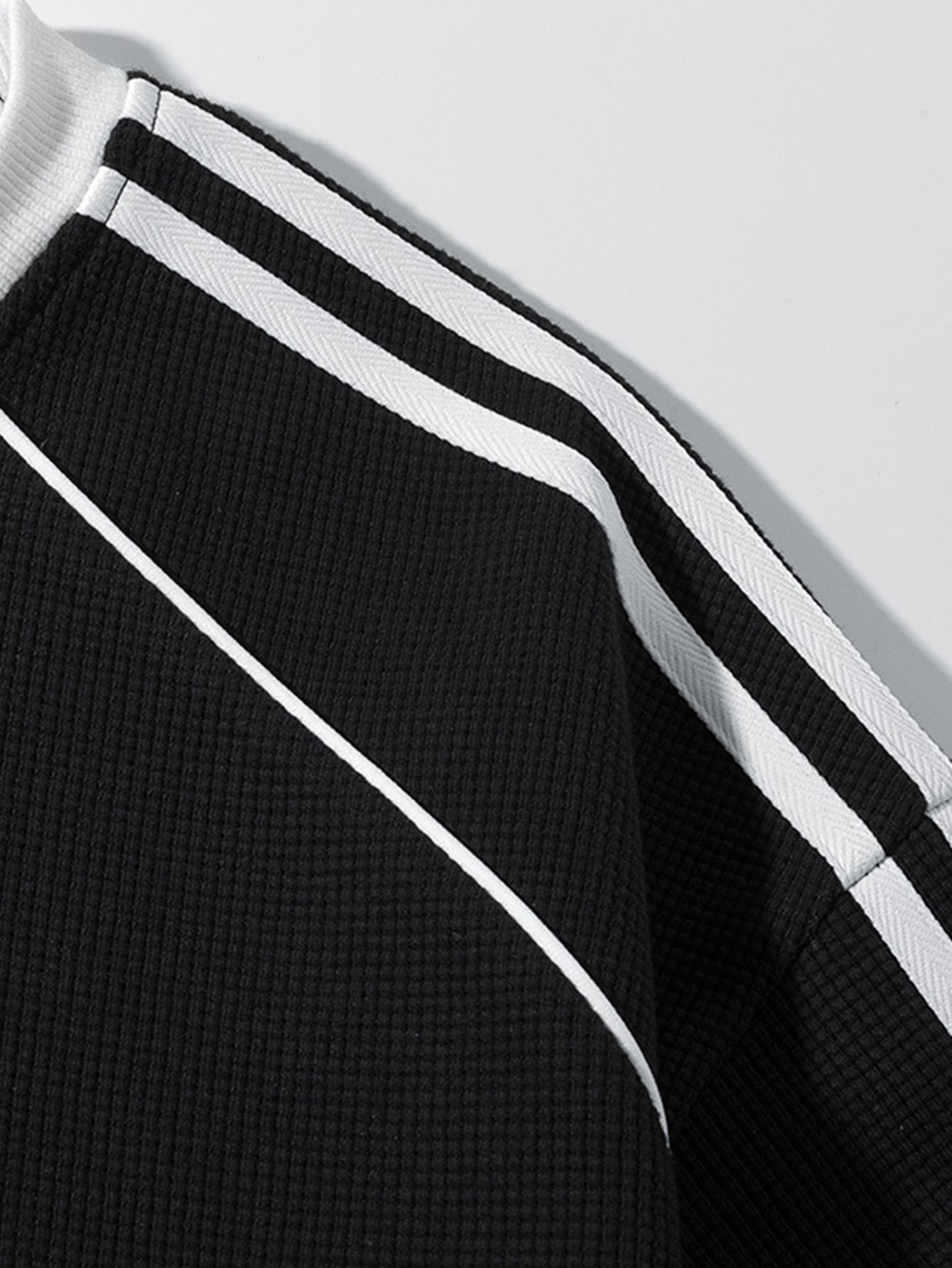 Gestreiftes Waffel-Sweatshirt mit Rundhalsausschnitt für einen lässigen Look
