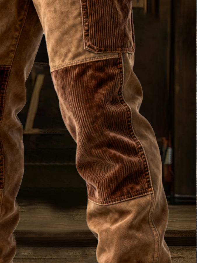Herren Retro Outdoor Adventure Cordsamt Nähte Multifunktionale Tasche Arbeitshose