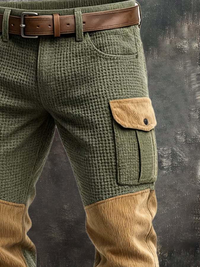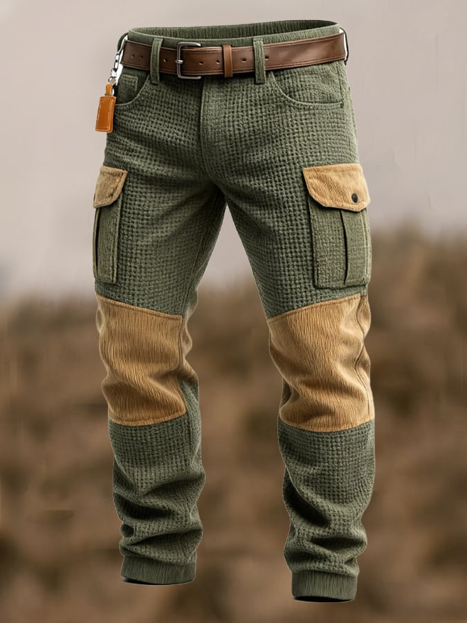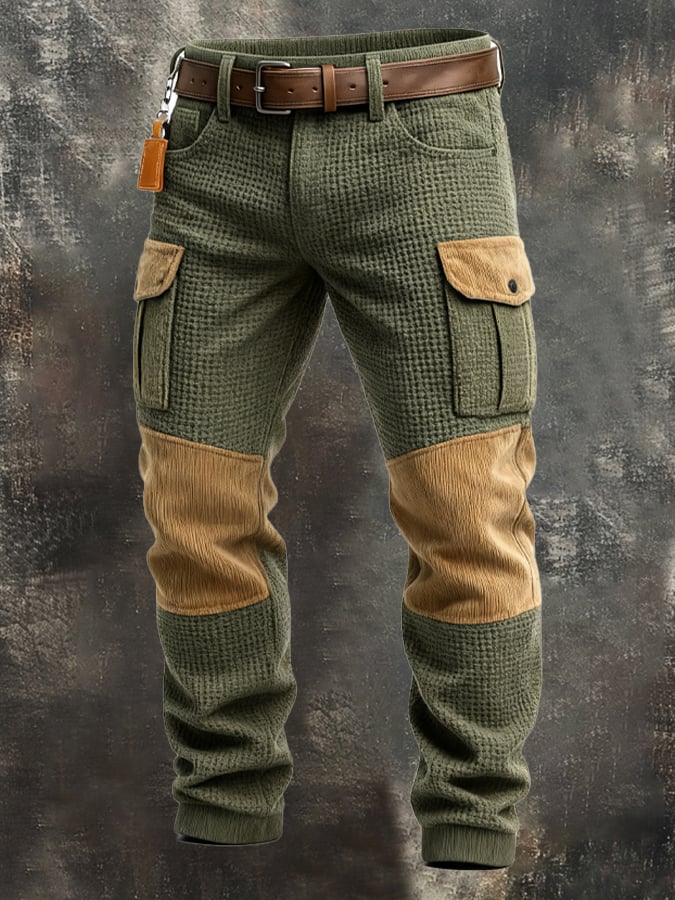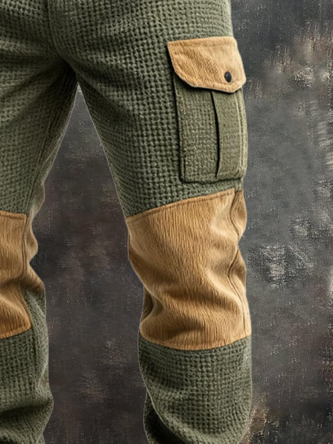 Herren Retro Outdoor Adventure Waffel Cord Nähte Multifunktionale Tasche Arbeitshose