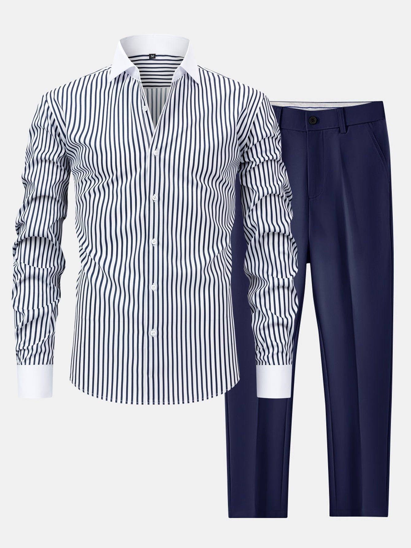 Das bügelfreie gestreifte Winchester-Hemd verfügt über einen klassischen gestreiften Körper mit kontrastierendem einfarbigem Kragen und Manschetten, was Ihrer formellen Garderobe eine distinguierte Note verleiht. Hergestellt aus knitterfreiem Stoff, sorgt es dafür, dass Sie von morgendlichen Meetings bis zu Veranstaltungen nach Feierabend frisch aussehen.