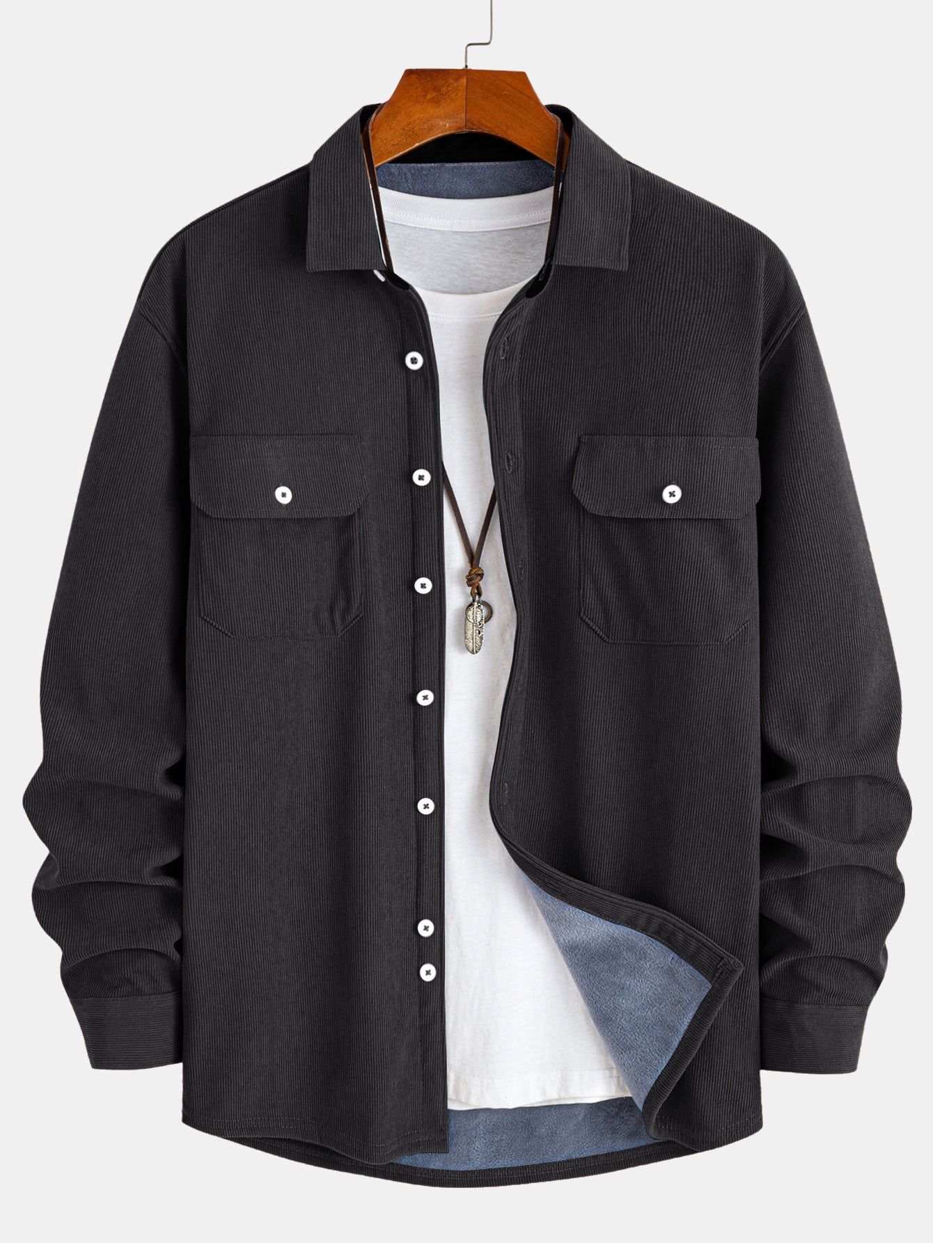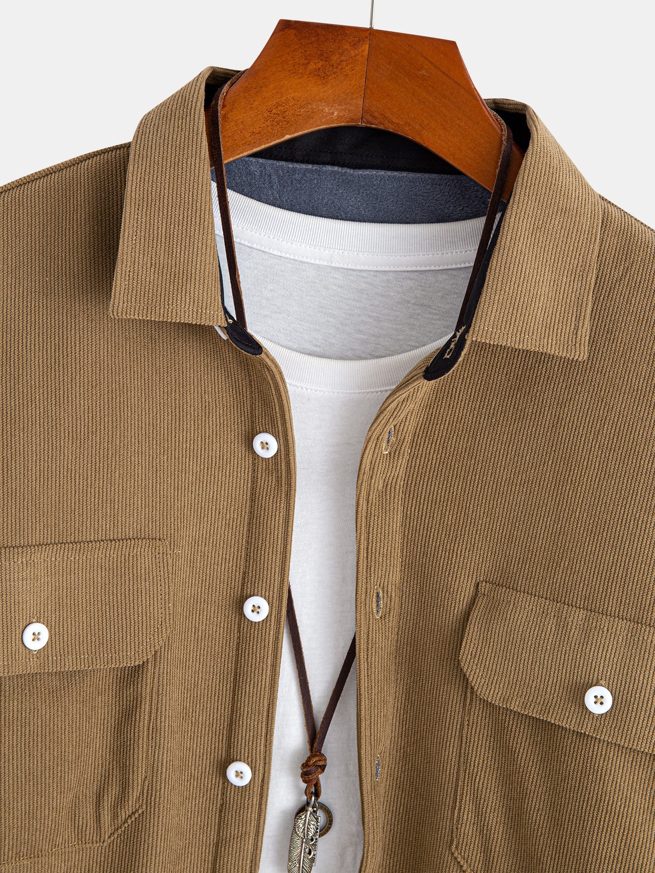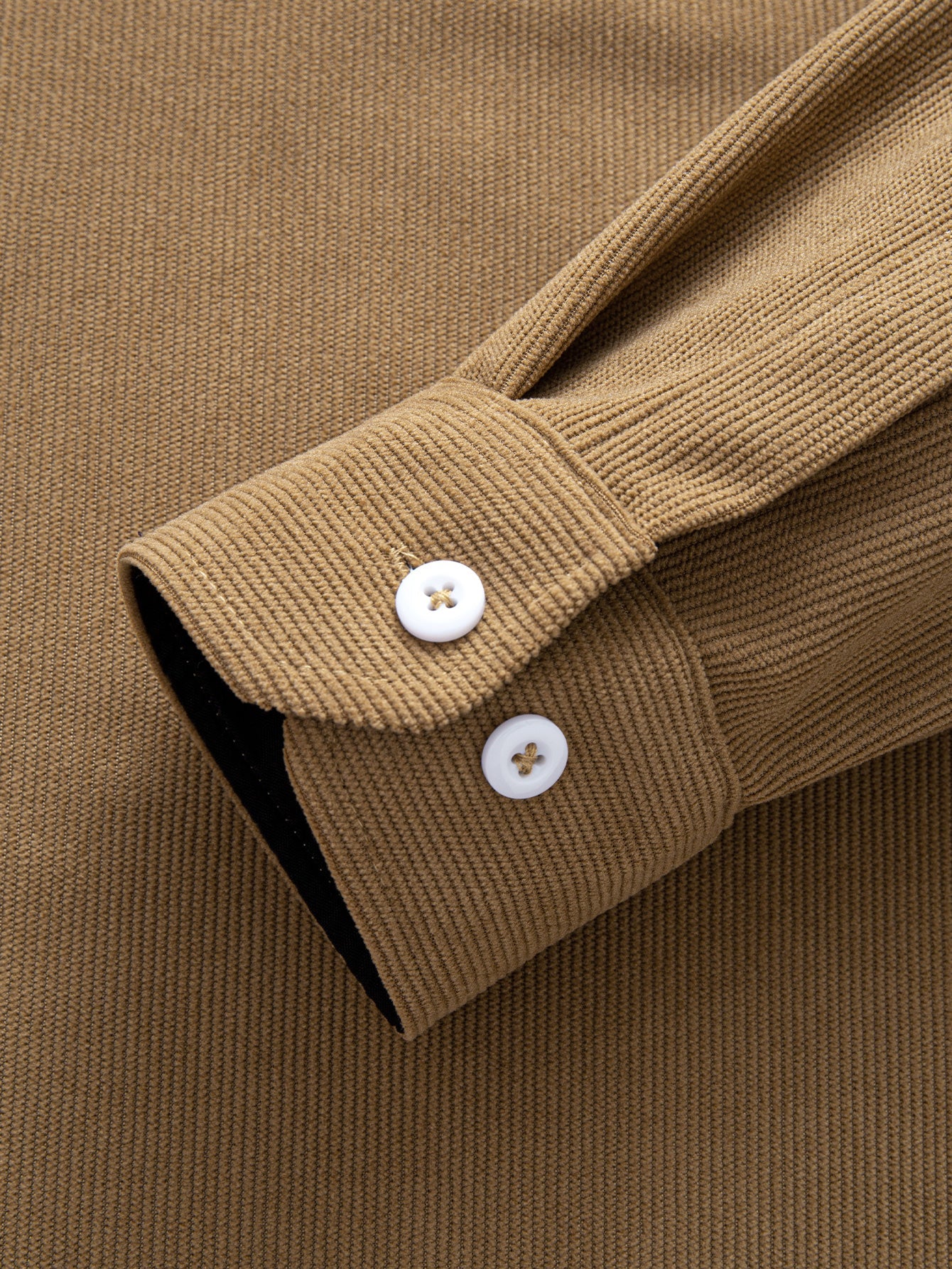 Hergestellt aus hochwertigem Cordstoff, bietet es eine weiche Textur und einen dezenten Glanz, der sowohl Wärme als auch Eleganz verleiht. Das klassische Knopf-Design und der ordentliche Kragen schaffen einen raffinierten, aber lässigen Look, der mühelos vom Büro zum Wochenende übergeht.