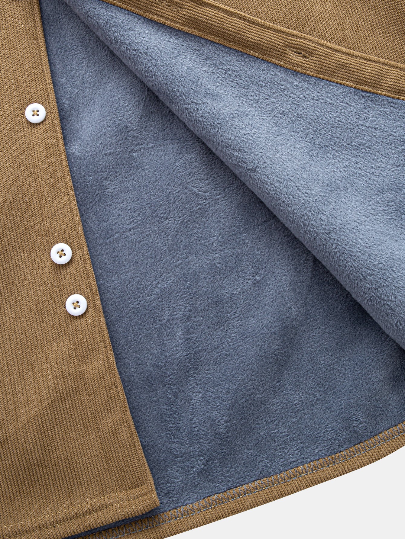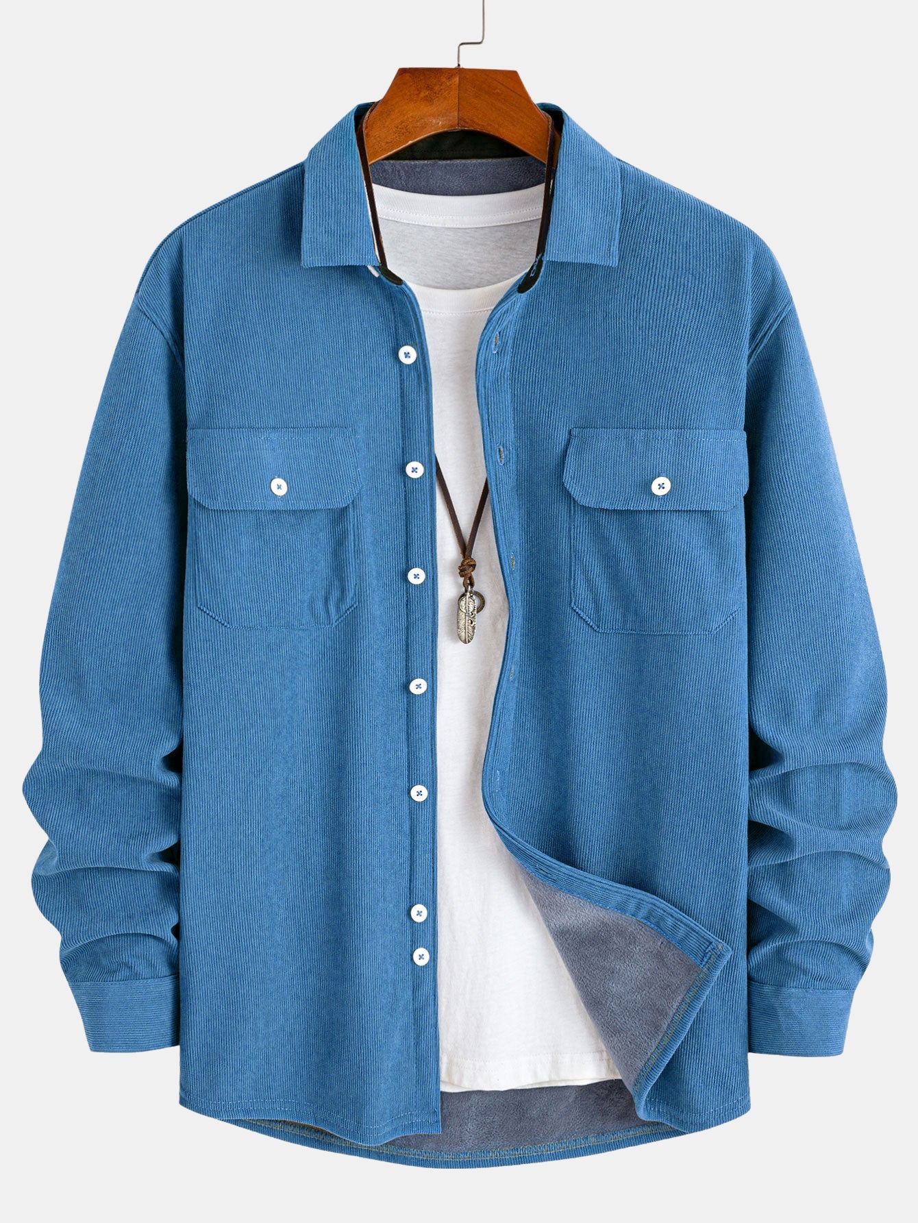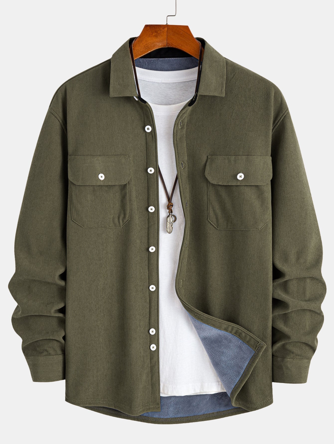 Hergestellt aus hochwertigem Cordstoff, bietet es eine weiche Textur und einen dezenten Glanz, der sowohl Wärme als auch Eleganz verleiht. Das klassische Knopf-Design und der ordentliche Kragen schaffen einen raffinierten, aber lässigen Look, der mühelos vom Büro zum Wochenende übergeht.