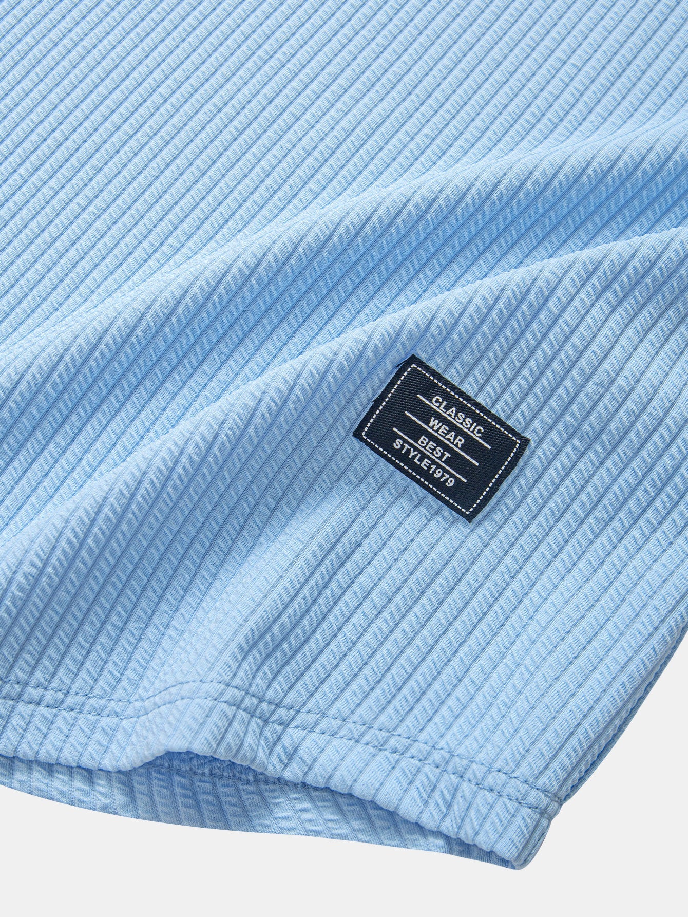 Dieses kurzärmelige Herren-Kapuzen-T-Shirt besteht aus dreidimensionalem, gestreiftem Strickstoff mit feiner Textur und verbindet Mode mit Praktikabilität. Das kurzärmelige Design mit verstellbarer Kordelzugkapuze verleiht einen lässigen Sportstil, und der leicht geschwungene Saum macht es schlanker und ordentlicher. Das "CLASSIC"-Stil gewebte Etikett am linken Saum unterstreicht dezent das Qualitätsgefühl und eignet sich für den täglichen Gebrauch, Urlaub oder leichte sportliche Aktivitäten.