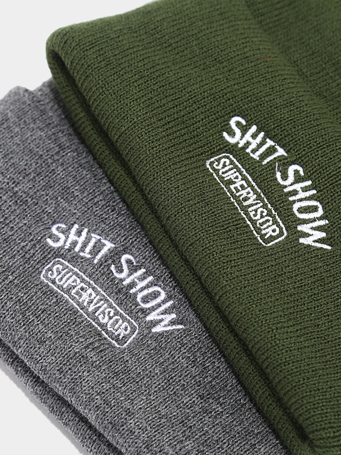 Hergestellt aus weichem, dehnbarem Strickstoff, hält er warm und setzt gleichzeitig ein mutiges Statement. Mit einem durchgehenden "Shit Show"-Muster ist diese Mütze perfekt für alle, die mit einer verspielten, rebellischen Note auffallen wollen.