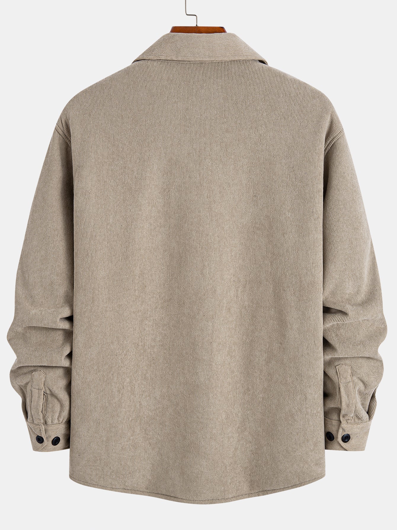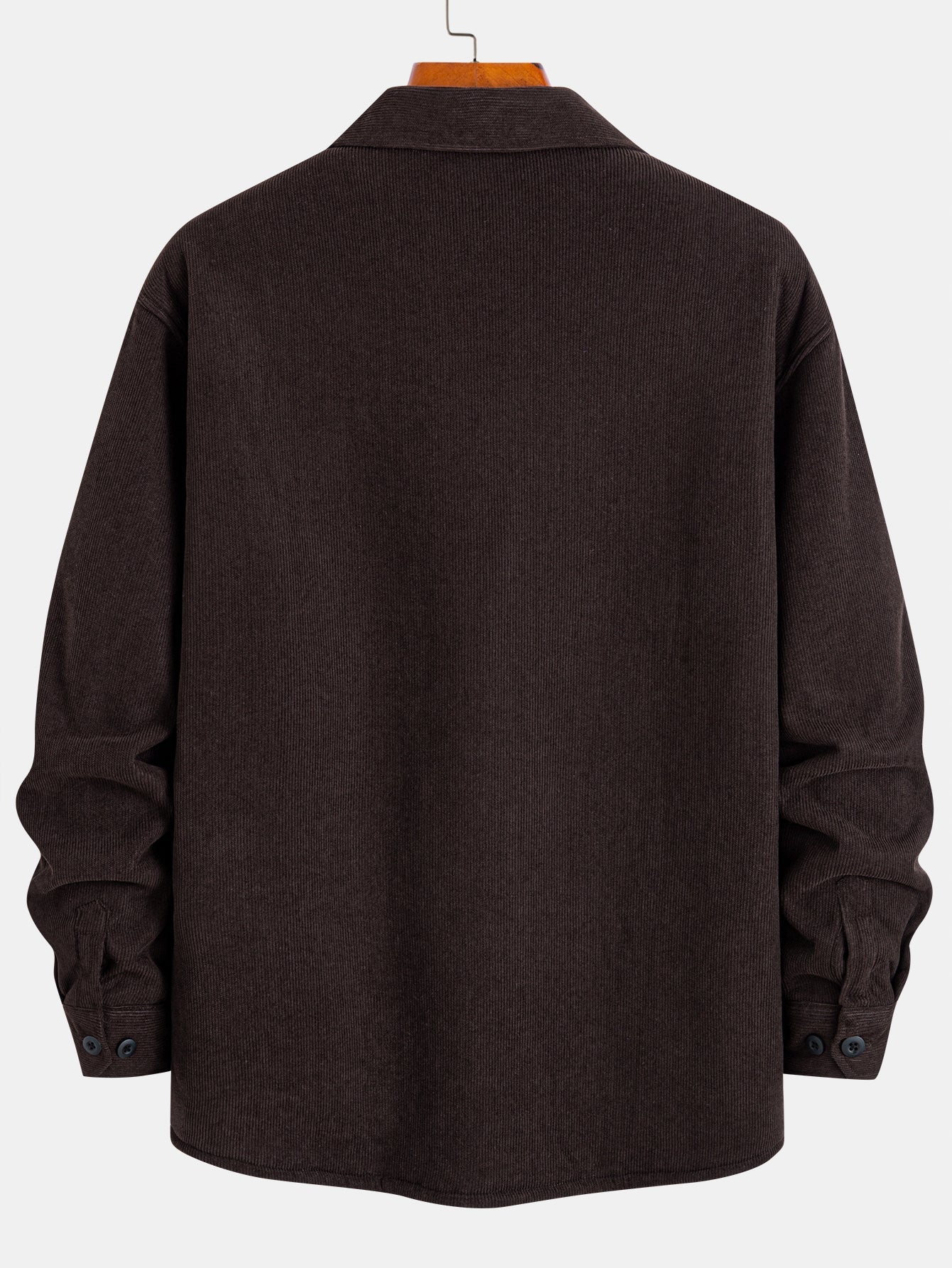 Hergestellt aus hochwertigem Cordstoff, bietet es eine weiche Textur und einen dezenten Glanz, der sowohl Wärme als auch Eleganz verleiht. Das klassische Knopf-Design und der ordentliche Kragen schaffen einen raffinierten, aber lässigen Look, der mühelos vom Büro zum Wochenende übergeht.