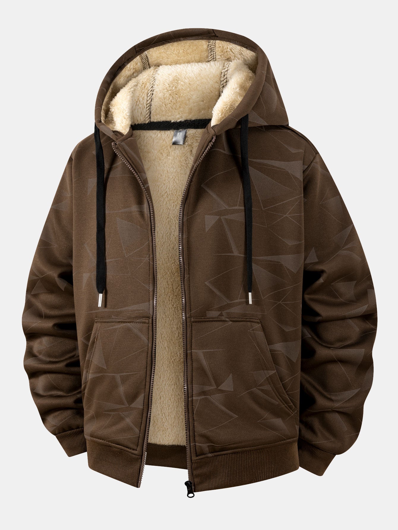 Hüllen Sie sich in Wärme und Stil mit dem teddygefütterten Kapuzenpullover mit geometrischem Druck und Reißverschluss ein, eine perfekte Kombination aus Komfort, Design und Funktionalität. Hergestellt aus weichem, strapazierfähigem Stoff und vollständig mit flauschigem Teddy-Fleece gefüttert, bietet dieser Kapuzenpullover überlegene Wärme und eine gemütliche Textur für kühlere Tage.