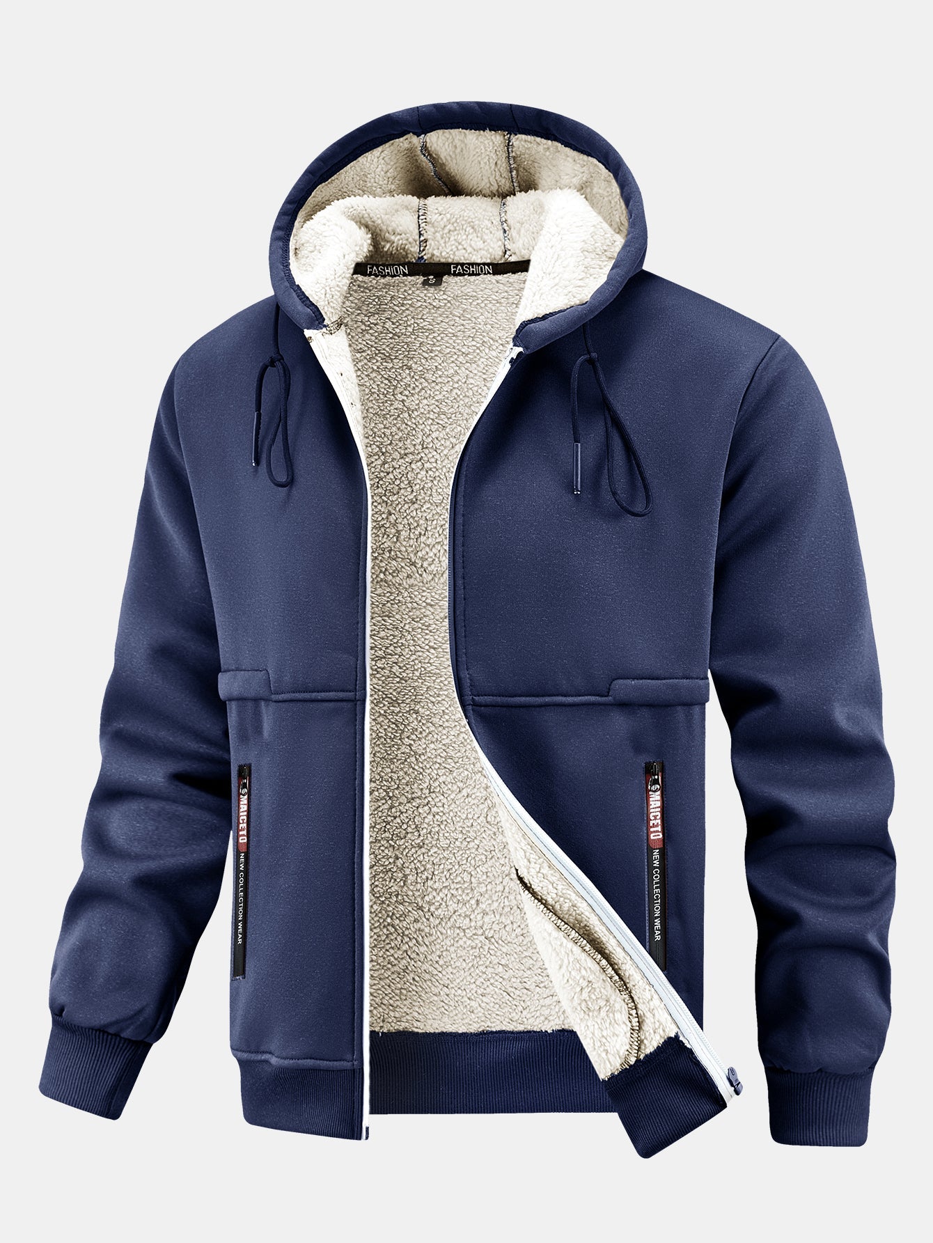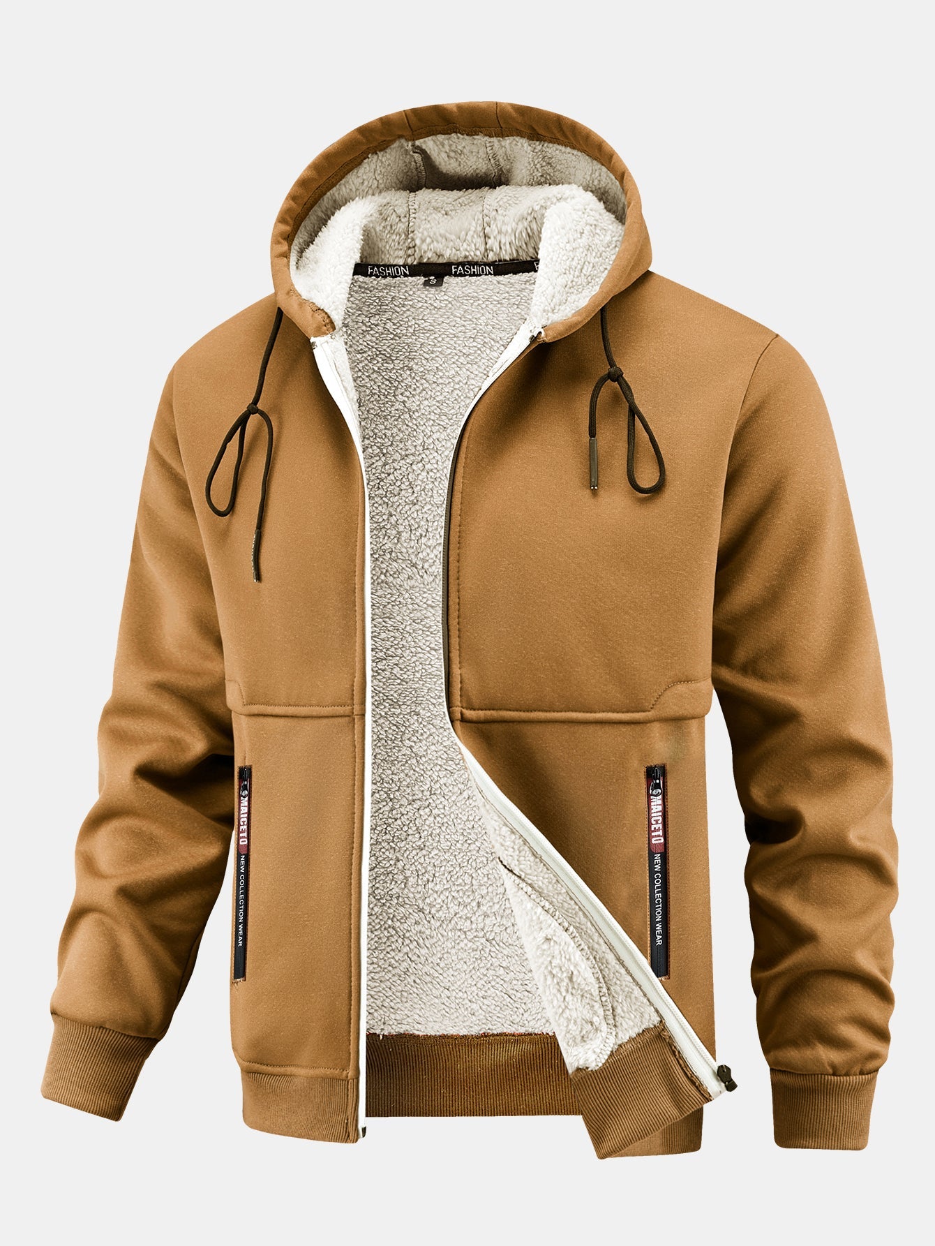 Teddy gefütterter Kapuzenpullover mit Reißverschlusstasche