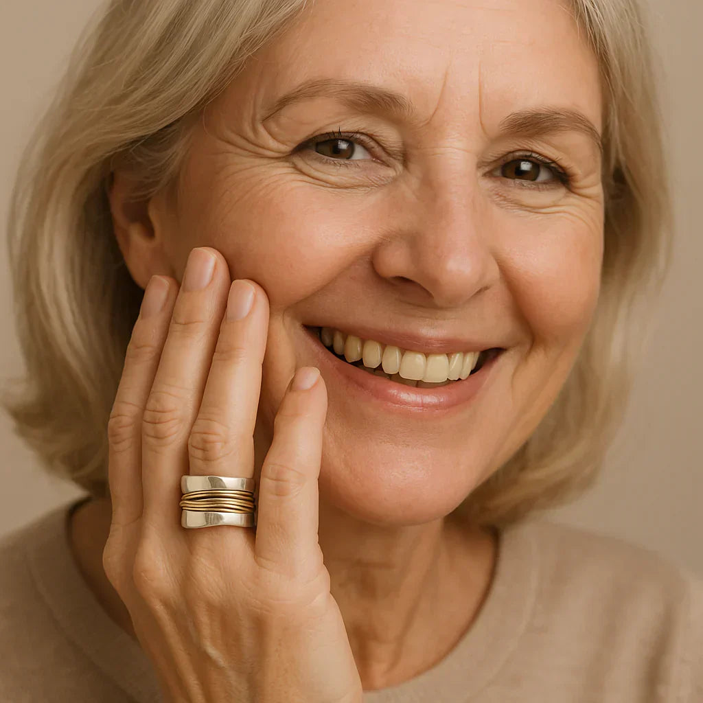 Dieser geflochtene Ring, mit einer antiken Oberfläche und einer unregelmäßigen Ästhetik, umarmt die Subtilität. Seine Form erinnert an einen handgearbeiteten Metallfaden, mit einem Design, das nicht nach Perfektion, sondern nach Authentizität strebt. Ideal solo oder gestapelt getragen, passt er wie eine zweite Haut. Zeitlos, unaufdringlich und voller Charakter — für diejenigen, die die Kunst der Einfachheit schätzen.